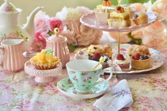 Confetti Roses on Green Teacup Gift Set