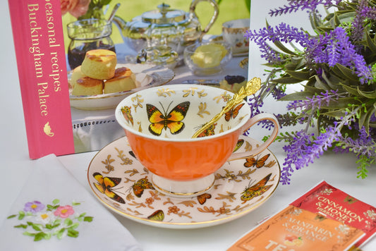 Butterflies on Orange Meadow Teacup Gift Set
