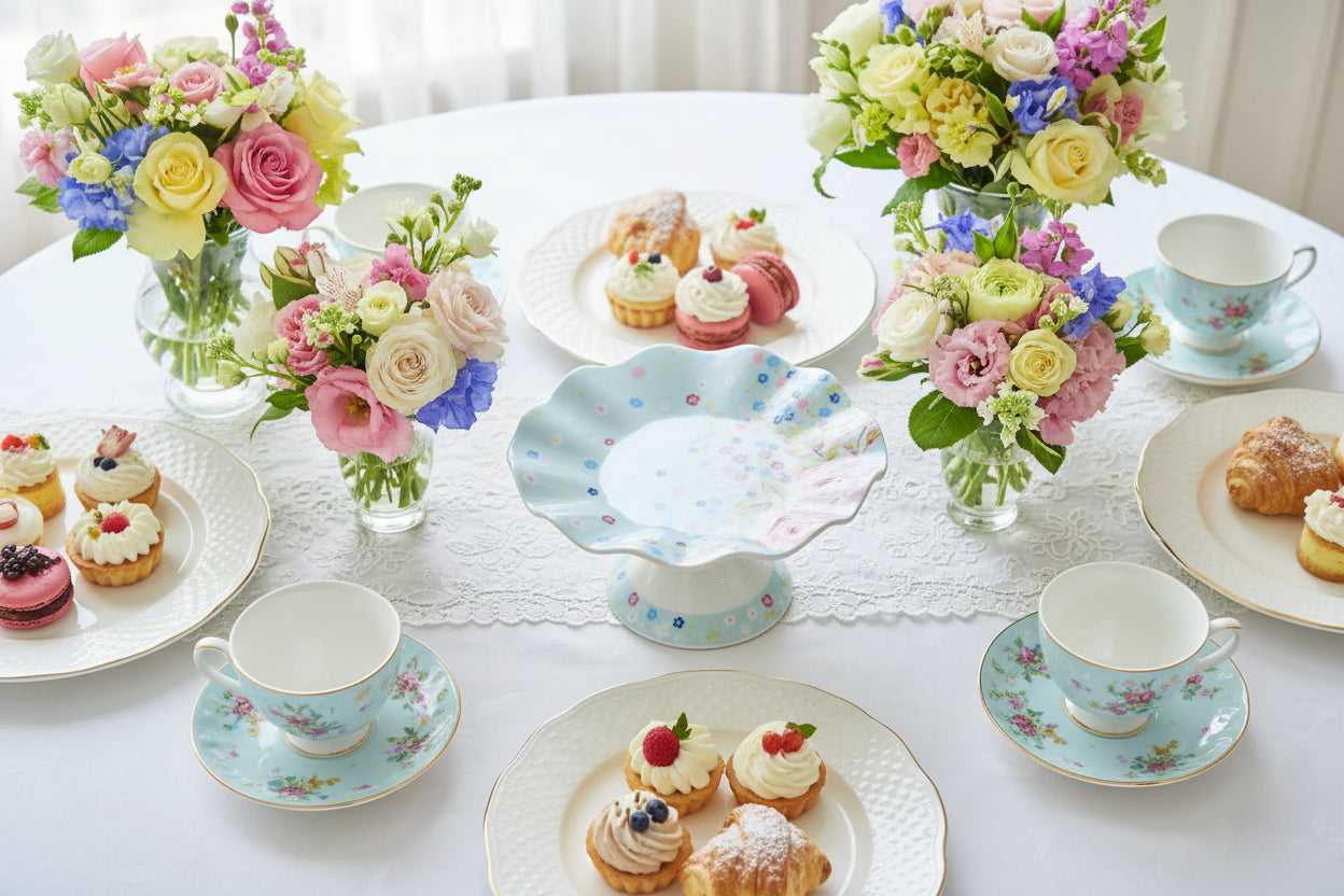 Bring understated elegance to your table with this charming Bloom porcelain cake stand. Hand-painted with delicate floating flowers and finished with scalloped edges, the 6.25 inch pedestal creates an inviting display for your favorite desserts and treats. Its soft, romantic aesthetic complements both traditional and contemporary décor, making it an ideal choice for intimate tea gatherings, celebrations, or everyday entertaining. A versatile piece that celebrates the beauty of fine tableware and adds a whisper of garden-inspired sophistication to any occasion. Props not included