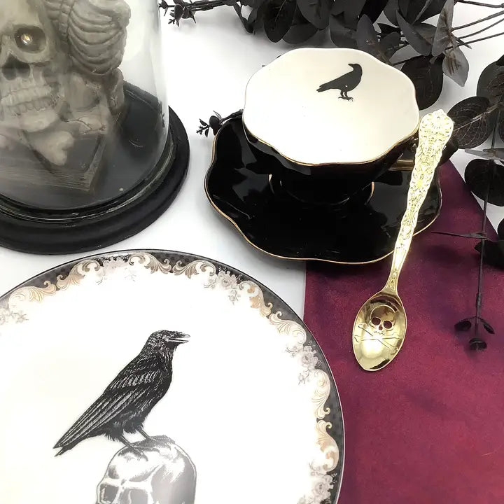 This intricate skull and bones teaspoon brings gothic elegance to any occasion.