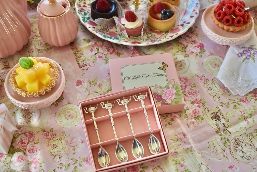 Set of four teaspoons comes in beautiful gift box with Care Instructions. This thoughtful packaging protects the spoon and presents it as a complete, elegant gift, eliminating the need for extra wrapping. It's instantly ready to bring joy to a tea lover, newlyweds, or a hostess.