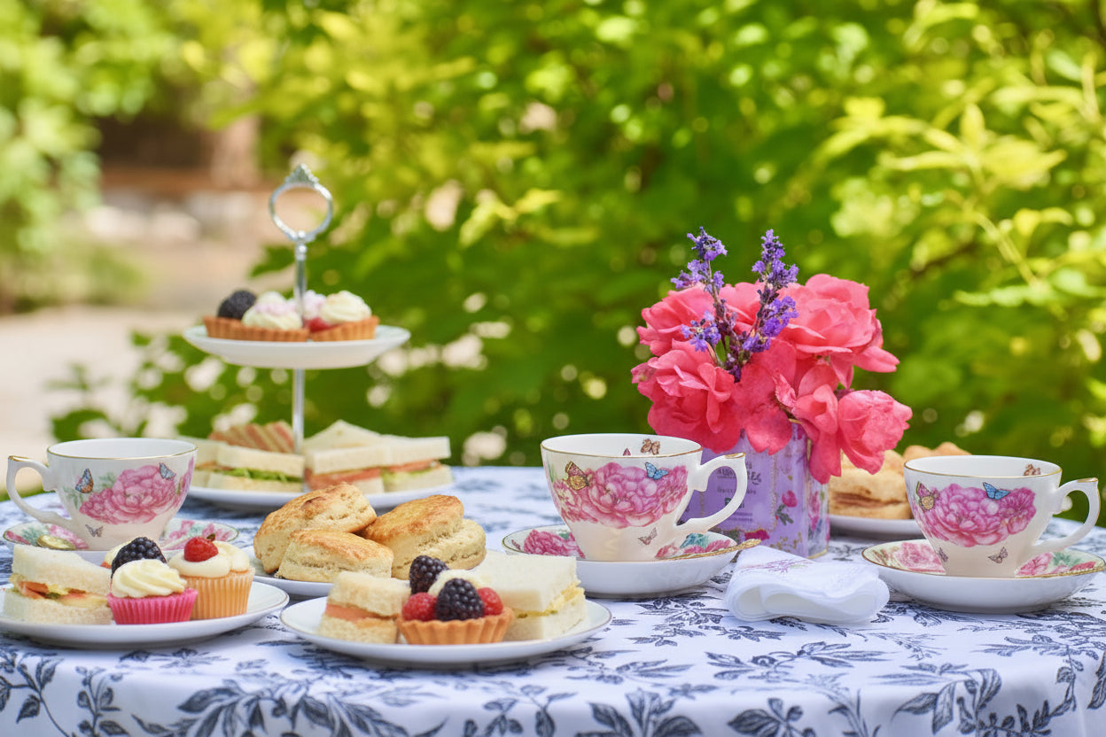 - Set Includes: Teacup, Saucer, Teaspoon, Linen Napkin, Tea Packet, Gift Box
